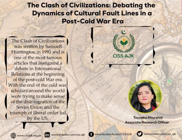 The Clash of Civilizations was written by Samuell Huntington in 1993 and is one of the most famous articles that instigated a debate in International Relations at the beginning of the post-cold War era. With the end of the cold war, scholars around the world were trying to make sense of the disintegration of the Soviet Union and the triumph of liberal order led by the US. While Francis Fukuyama was overjoyed with the triumph of the liberal International system and pointed out the cold war as the end of history as no other order can challenge the liberal norms of democracy and free trade΄ Sameul Hungtinton presented a different thesis and predicted that the new world order will be dominated by the clash of civilization where the main source of conflict will be along cultural lines and in future, countries will be grouped along civilizational lines as the civilizational identities will be extremely important.
