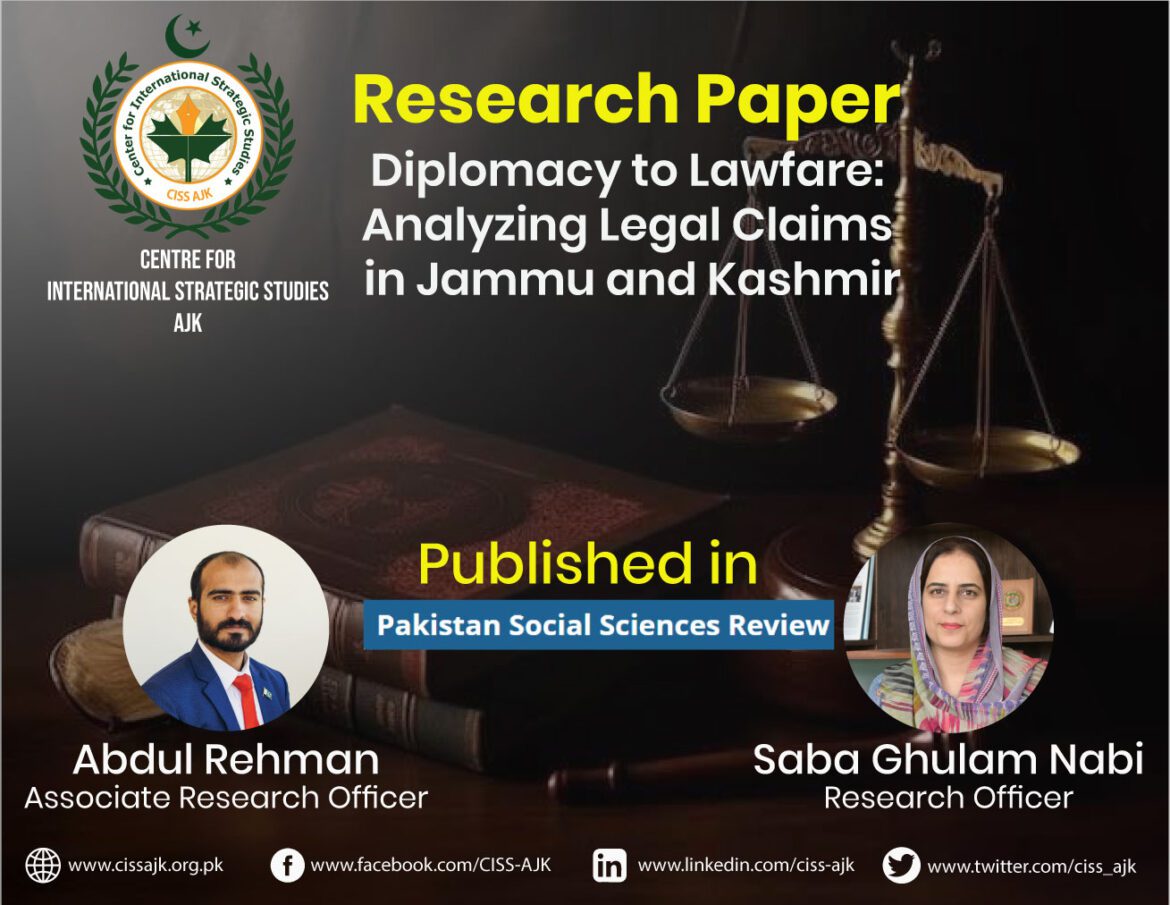 Jammu and Kashmir, a region nestled in the northern part of the Indian subcontinent, has been a long-standing source of political and territorial dispute between India, Pakistan, and China. This comprehensive analysis delves into the intricate web of historical, geopolitical, and legal aspects surrounding the Jammu and Kashmir issue. It explores how diplomacy has been employed as a tool to address the dispute and how the matter has evolved into “lawfare,” where international legal claims and arguments play a central role. This paper examines the various legal perspectives and claims put forth by the involved parties, including India, Pakistan, and the people of Jammu and Kashmir, and assesses the impact of these claims on the ongoing conflict. Through this analysis, we aim to shed light on the complex interplay between diplomacy and international law in the context of the Jammu and Kashmir dispute.