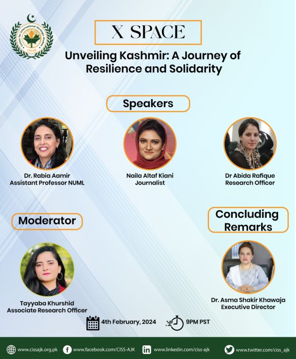 Center for International Strategic Studies Azad Jammu and Kashmir was established in Muzaffarabad on November 01, 2022. It is an autonomous, non-profit, non-partisan and multidisciplinary Research Center with a focus not limited to Kashmir only, but the regional and global dynamics influencing Pakistan.