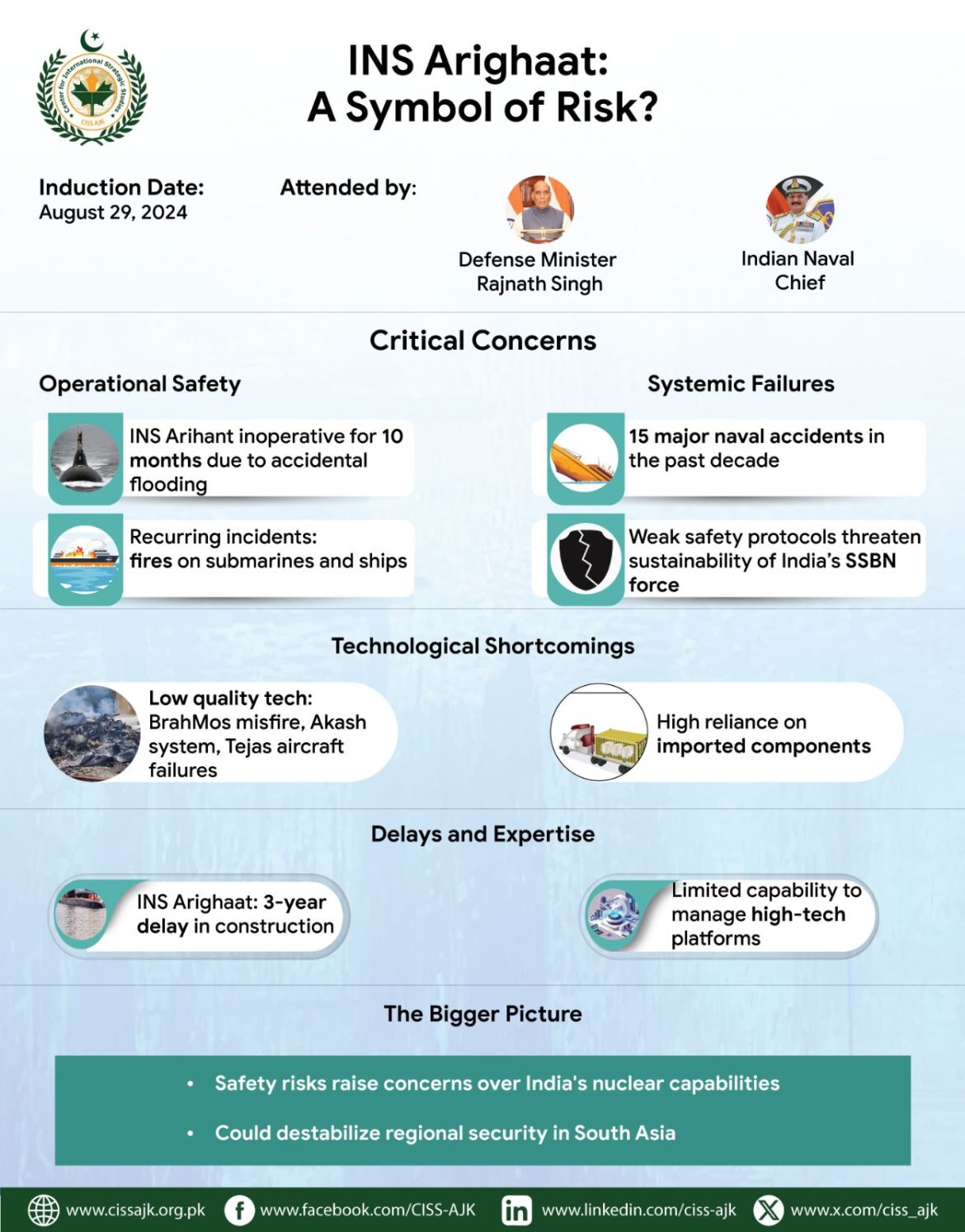 On August 29, 2024, India inducted INS Arighaat into its navy, attended by Defense Minister Rajnath Singh and the Indian Naval Chief. However, this event comes after numerous safety issues in India’s naval operations, particularly surrounding nuclear powered submarines, raising concerns about operational reliability and safety protocols within the Indian Navy.