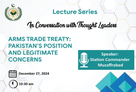 Brigadier Qaiser Iqbal, Station Commander of 1 AK Brigade, delivered an insightful lecture on “The Arms Trade Treaty (ATT): Pakistan’s Position and Legitimate Concerns.”