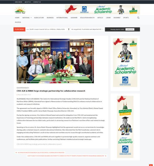 Center for International Strategic Studies Azad Jammu and Kashmir was established in Muzaffarabad on November 01, 2022. It is an autonomous, non-profit, non-partisan and multidisciplinary Research Center with a focus not limited to Kashmir only, but the regional and global dynamics influencing Pakistan.