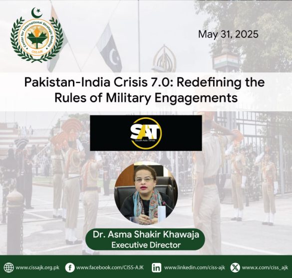 Dr. Asma Shakir Khawaja is the Founding Executive Director of the Center for International Strategic Studies, AJK, and the first woman appointed to this role by Pakistan’s National Command Authority. A former Head of Strategic Studies at NDU Islamabad, she established Pakistan’s first Department of Peace and Conflict Studies. She is the author of “Shaking Hands with Clenched Fists” and was selected for the Allama Iqbal Chair at Cambridge University. Her expertise includes strategic studies, peacebuilding, and Pakistan-India relations.
