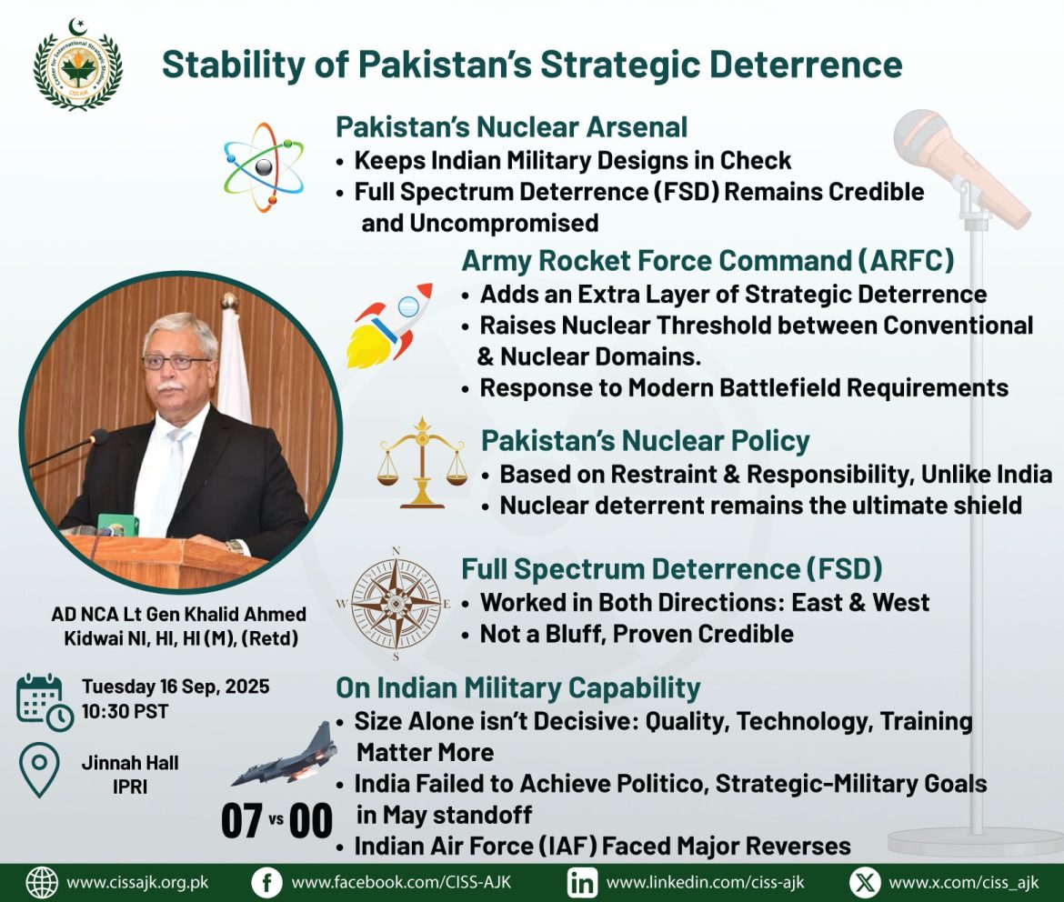 ▶️Pakistan’s nuclear arsenal keeps Indian military designs in check and that Full Spectrum Deterrence (FSD) remains credible and uncompromised.