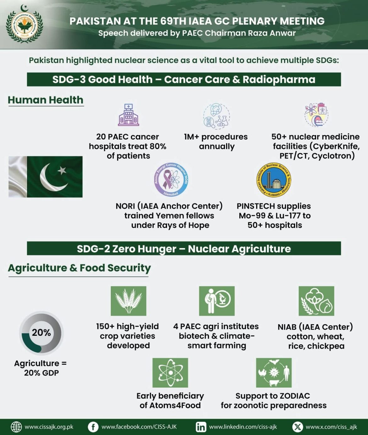 ➡️ At the 69th IAEA General Conference Plenary Meeting, Pakistan highlighted how nuclear science is driving progress on SDGs, including milestones Pakistan has achieved in various sectors: