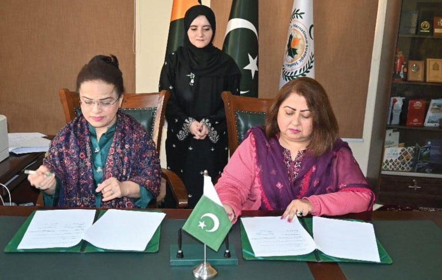 The MoU was signed between , Dr. Asma Shakir Khawaja, Executive Director, CISS AJK and Prof. Dr. Anila Kamal, Vice Chancellor, Women University Bagh AJK.