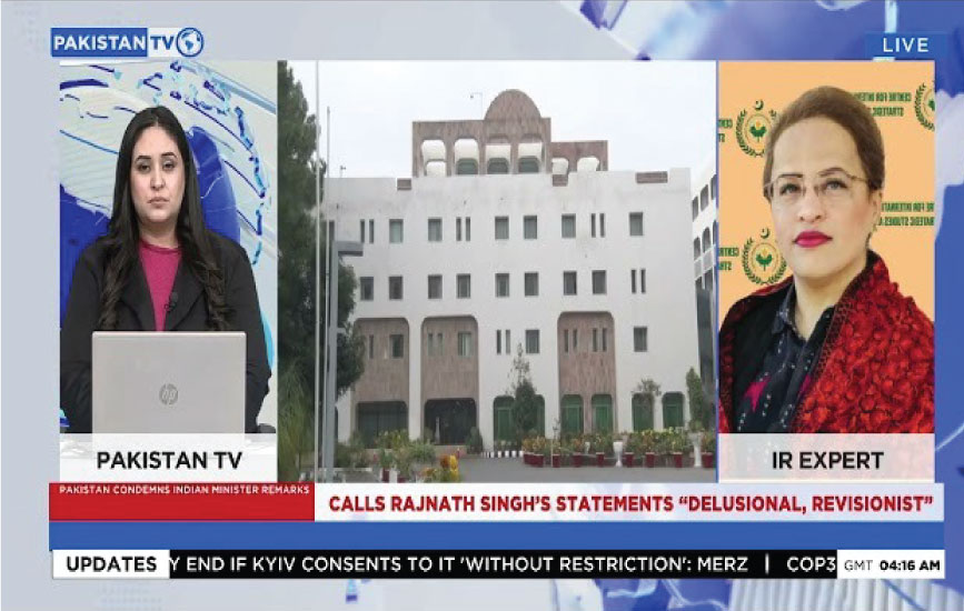 Dr. Asma Khawaja, Executive Director CISS AJK, analysed the recent statement by Indian Defence Minister Rajnath Singh about Sindh on Pakistan Television.