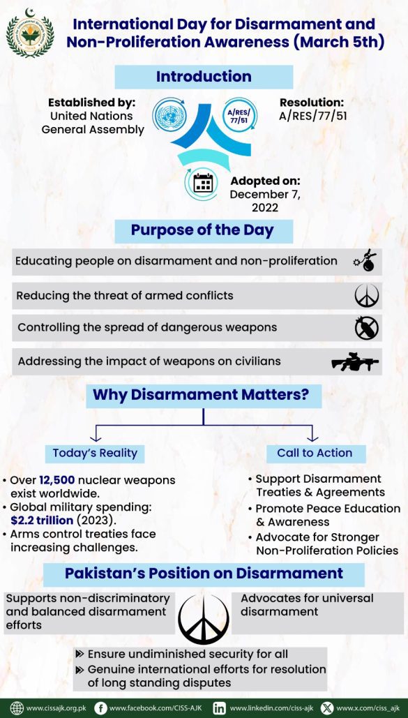 The Infographic highlights the importance of disarmament and non-proliferation in ensuring global peace and security.