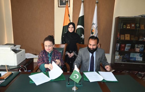 The MoU was signed between Dr. Asma Shakir Khawaja, Executive Director, CISS AJK, and Lt Gen Dr. Asif Mumtaz Sukhera HI (M) Retd, Vice Chancellor, Mohi-ud-Din Islamic University Nerian Sharif AJ&K.