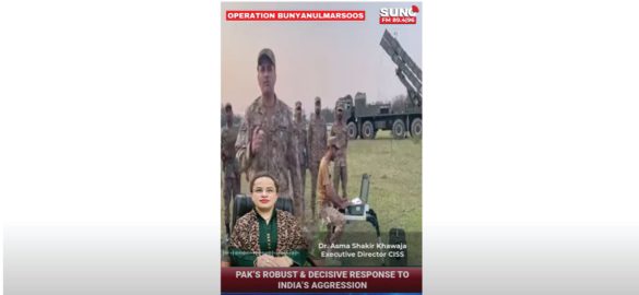 Dr Asma Shakir Khawaja , Executive Director, CISS AJK appeared on The Forum with Javed Khan Judoon on Suno FM 89.4|96 to discuss Pakistan robust and decisive response to Indian aggression on 10th May 2025.