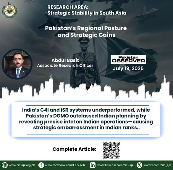 —The writer is Associate Research Officer at the Centre for International Strategic Studies AJK and also an alumnus of NESA, NDU Washington.