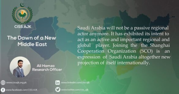 Saudi Arabia’s independent pursuit of its interests internationally with an active diplomatic footprint has provided it with a much better bargaining position. Along with modernizing the Saudi Arabian economy and society, the regime is intent on making the kingdom the dominant voice not only in the Middle East but the world as well. Over the years, Saudi Arabia has built a sound and mutually beneficial relationship with China. It has become more flexible and achieved a breakthrough in its relationship with Iran as well. Its membership in the SCO is the culmination of a new era of Saudi diplomatic independence and assertion and will have influential consequences for the whole Middle East. Saudi Arabia has made it clear that Middle Eastern states will not passively look towards the US as it abandons the region, but they will look for more and better options around.