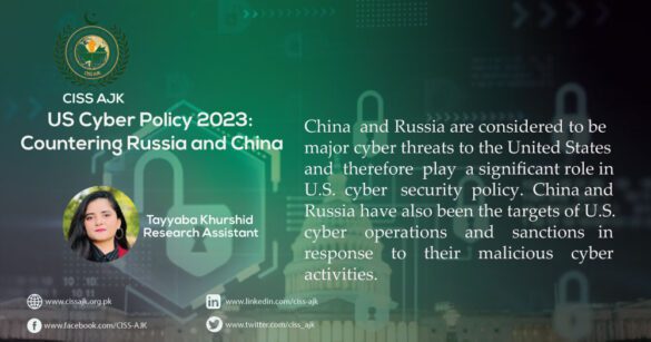 China and Russia’s activities in cyberspace have shaped U.S. cyber security policy and led to increased attention and resources devoted to protecting U.S. networks and systems from foreign threats.WHAT PAKISTAN CAN LEARN FROM US CYBER SECURITY POLICY? The US cyber security policy emphasizes collaboration and information sharing among government agencies, the private sector, and international partners. Pakistan can learn from this approach by fostering collaboration and cooperation among government agencies, industry, and academic institutions to build a robust cybersecurity ecosystem. It also emphasizes risk management, including identifying, assessing, and mitigating cyber security risks. Pakistan can adopt a similar approach by identifying and prioritizing critical assets, assessing the risks associated with those assets, and implementing appropriate cybersecurity measures. Moreover, the importance of cyber security education and awareness for all stakeholders is a key strategy of the US in Cyberspace and Pakistan can improve its cyber policy by developing cyber security awareness programs to educate and train government employees, private sector stakeholders, and the general public. Pakistan can learn from the US policy of giving importance to incident response and recovery plans to minimize the impact of cyber-attacks by developing and implementing effective incident response and recovery plans to mitigate the impact of cyber-attacks. In a nutshell, the US cyber security policy emphasizes the importance of continuous monitoring and evaluation of cyber security measures to identify and address emerging threats and Pakistan should also implement continuous monitoring and evaluation of its cyber security measures to ensure that they remain effective and relevant over time.