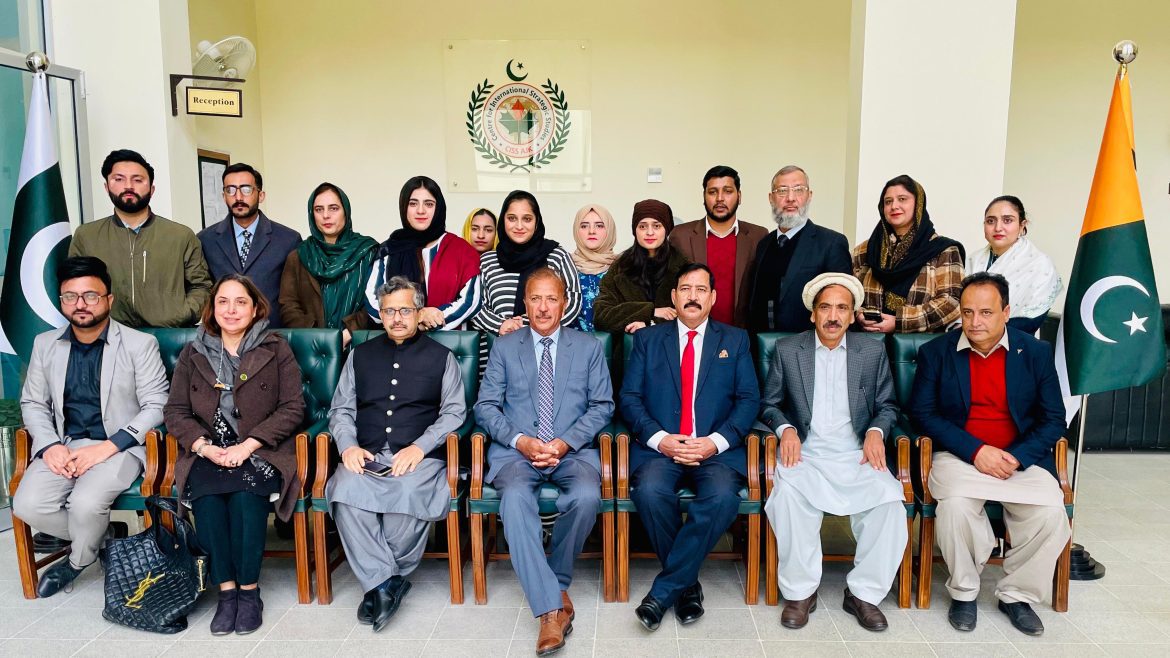On December 11, 2024 at 2 pm, the Center for International Strategic Studies, Azad Jammu and Kashmir (CISSAJK), welcomed Vice Chancellors from leading universities in AJK for an engaging session aimed at fostering collaboration between academia and the think tank. Associate Director Zohaib Altaf chaired the meeting, with CISSAJK’s research faculty in attendance.